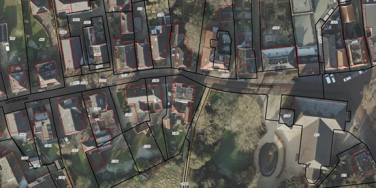 Het perceel waarop Grotestraat 5 staat heeft een oppervlakte van 615 m². Dit is een groot perceel. De perceeloppervlakte wordt geregistreerd door het Kadaster. Gedetailleerde informatie over de maten van dit perceel kunt u vinden in het rapport Kadastrale kaart met maatvoering van Grotestraat 5.