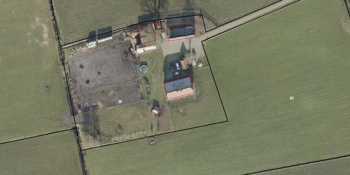 Het adres is gelegen op perceel 77 in de sectie O en de kadastrale gemeente Den Ham. De kadastrale aanduiding is aldus HAM00-O-77. De oppervlakte van het perceel is 5550 m². Dat is groter dan gemiddeld in Den Ham, waar de gemiddelde perceeloppervlakte op 4695,15 m² ligt. Het grootste perceel in de kadastrale gemeente is 57,2 ha. Het kleinste perceel heeft een oppervlakte van 0 m². Er zijn 2 adressen aanwezig op het perceel. De huidige grenzen van het perceel zijn digitaal in de Basisregistratie Kadaster (BRK) geregistreerd op 11-12-2001.