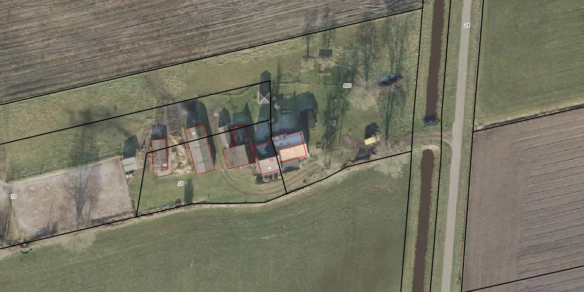 Het adres is gelegen op perceel 950 in de sectie O en de kadastrale gemeente Den Ham. De kadastrale aanduiding is aldus HAM00-O-950. Het perceel is 4243 m² groot. Dat is kleiner dan de gemiddelde perceeloppervlakte in Den Ham, dat op 4690,15 m² ligt. Het kleinste perceel in de kadastrale gemeente is 0 m² groot. De grootste perceeloppervlakte is 57,2 ha. Op het perceel bevinden zich geen andere adressen. De laatste wijziging in het de Basisregistratie Kadaster (BRK) was op 02-01-2020.