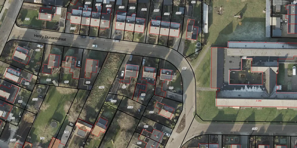 Het perceel waarop Henry Dunantstraat 3 staat heeft een oppervlakte van 381 m². Dit is een groot perceel. De perceeloppervlakte wordt geregistreerd door het Kadaster. Gedetailleerde informatie over de maten van dit perceel kunt u vinden in het rapport Kadastrale kaart met maatvoering van Henry Dunantstraat 3.