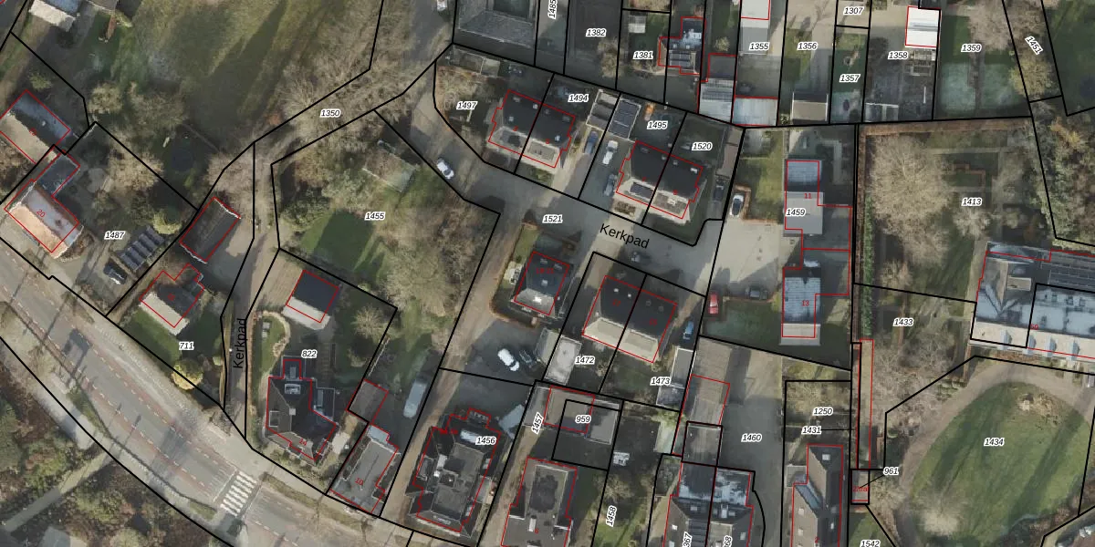 Het perceel waarop Kerkpad 19 staat heeft een oppervlakte van 1086 m². Dit is een zeer groot perceel. De perceeloppervlakte wordt geregistreerd door het Kadaster. Gedetailleerde informatie over de maten van dit perceel kunt u vinden in het rapport Kadastrale kaart met maatvoering van Kerkpad 19.