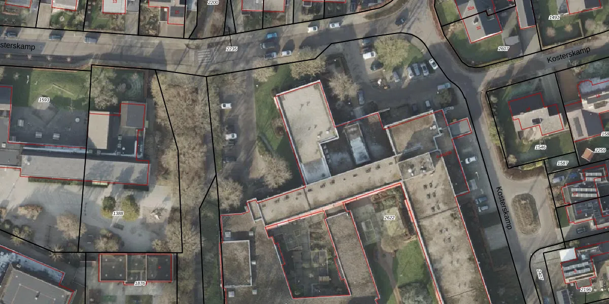 Kosterskamp 4-k002 is gelegen op kadastraal perceel HAM00D2622. Deze kadastrale aanduiding is uniek en wordt gebruikt door het Kadaster om eigendomsrechten en andere zakelijke rechten vast te leggen. Het perceel maakt onderdeel uit van de kadastrale gemeente Den Ham.