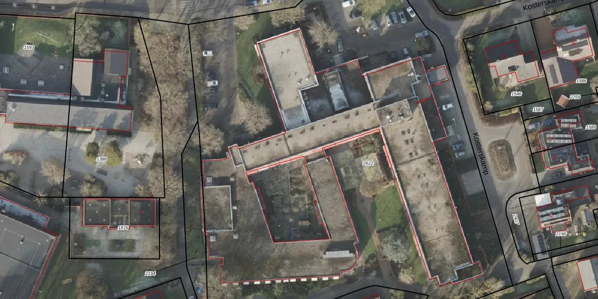 Het perceel waarop Kosterskamp 4-k104 staat heeft een oppervlakte van 9298 m². Dit is een zeer groot perceel. De perceeloppervlakte wordt geregistreerd door het Kadaster. Gedetailleerde informatie over de maten van dit perceel kunt u vinden in het rapport Kadastrale kaart met maatvoering van Kosterskamp 4-k104.