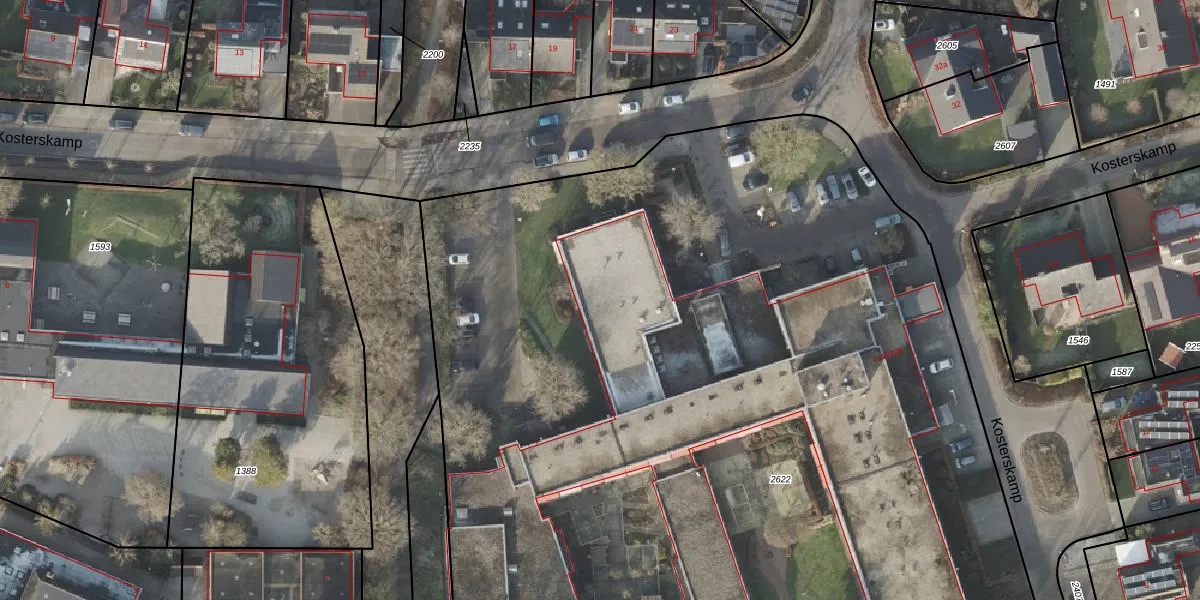 Kosterskamp 4-k109 is gelegen op kadastraal perceel HAM00D2622. Deze kadastrale aanduiding is uniek en wordt gebruikt door het Kadaster om eigendomsrechten en andere zakelijke rechten vast te leggen. Het perceel maakt onderdeel uit van de kadastrale gemeente Den Ham.