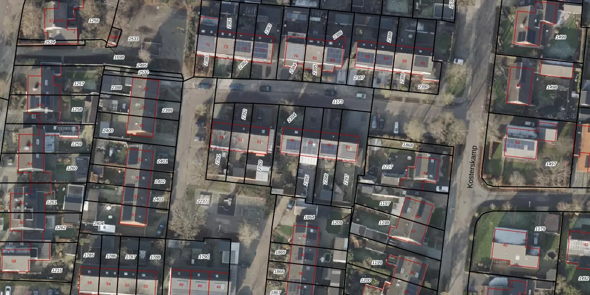 Het perceel waarop Kosterskamp 49 staat heeft een oppervlakte van 262 m². Dit is een middelgroot perceel. De perceeloppervlakte wordt geregistreerd door het Kadaster. Gedetailleerde informatie over de maten van dit perceel kunt u vinden in het rapport Kadastrale kaart met maatvoering van Kosterskamp 49.