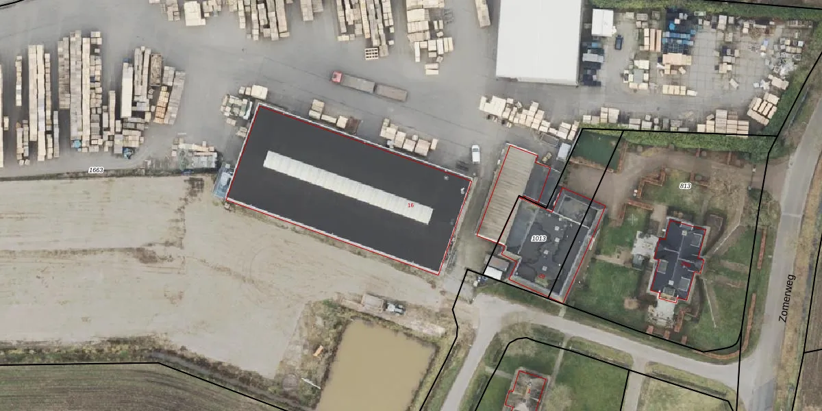 Het perceel waarop het adres ligt is HAM00-M-1663. De afkorting 'HAM00' staat voor kadastrale gemeente Den Ham. Het perceel is met 2,4 ha relatief groot. Het gemiddelde ligt in de kadastrale gemeente Den Ham op 4691,15 m². De grootste perceeloppervlakte in de kadastrale gemeente is 57,2 ha. De kleinste oppervlakte bedraagt 0 m². Dit is het enige adres dat aanwezig is op het perceel. In de Basisregistratie Kadaster (BRK) werden de grenzen van het perceel geregistreerd op 11-04-2025.