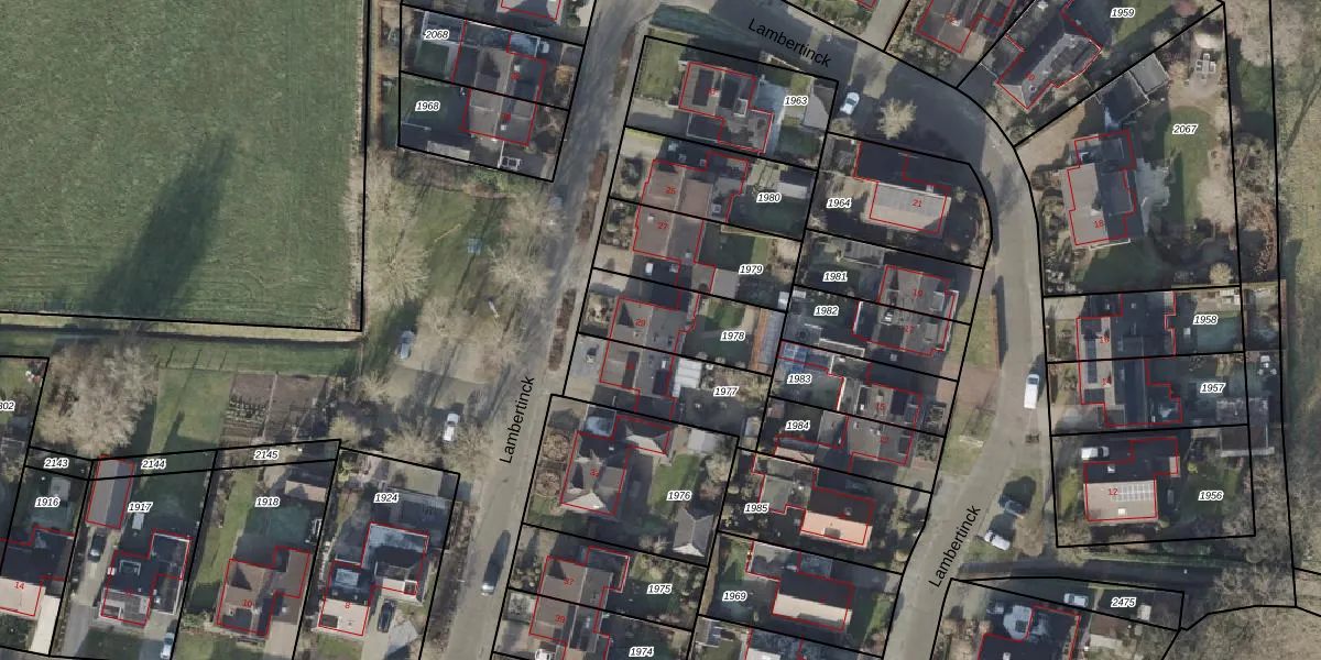 Het perceel waarop Lambertinck 29 staat heeft een oppervlakte van 302 m². Dit is een groot perceel. De perceeloppervlakte wordt geregistreerd door het Kadaster. Gedetailleerde informatie over de maten van dit perceel kunt u vinden in het rapport Kadastrale kaart met maatvoering van Lambertinck 29.