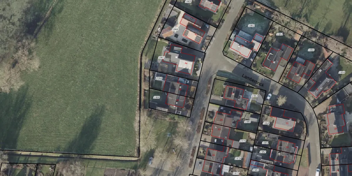 Het perceel waarop Lambertinck 36 staat heeft een oppervlakte van 275 m². Dit is een middelgroot perceel. De perceeloppervlakte wordt geregistreerd door het Kadaster. Gedetailleerde informatie over de maten van dit perceel kunt u vinden in het rapport Kadastrale kaart met maatvoering van Lambertinck 36.