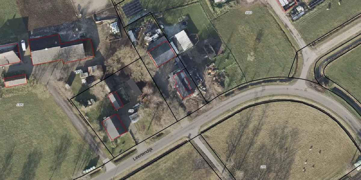 Leertendijk 1-b is gelegen op kadastraal perceel HAM00M160. Deze kadastrale aanduiding is uniek en wordt gebruikt door het Kadaster om eigendomsrechten en andere zakelijke rechten vast te leggen. Het perceel maakt onderdeel uit van de kadastrale gemeente Den Ham.