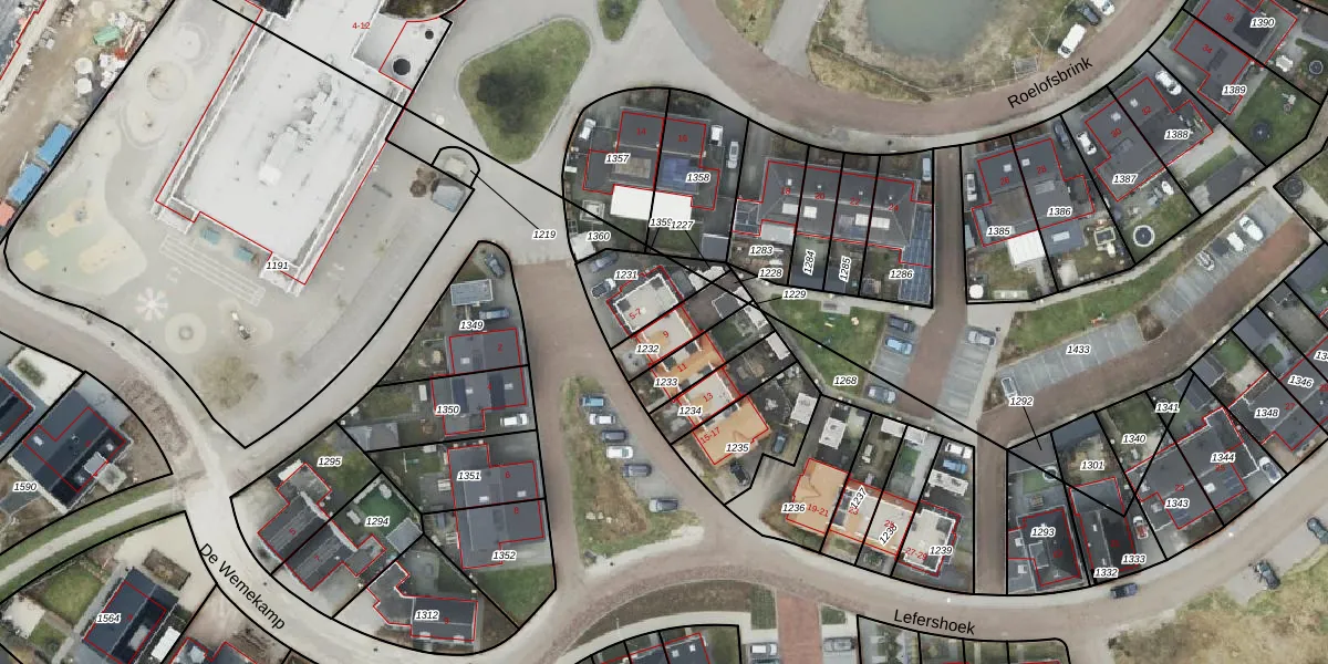 Gebruik de zoekbalk of klik op een perceel voor informatie over de adressen binnen dit perceel.
