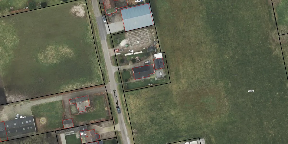 Middenweg 3 is gelegen op kadastraal perceel HAM00N1067. Deze kadastrale aanduiding is uniek en wordt gebruikt door het Kadaster om eigendomsrechten en andere zakelijke rechten vast te leggen. Het perceel maakt onderdeel uit van de kadastrale gemeente Den Ham.