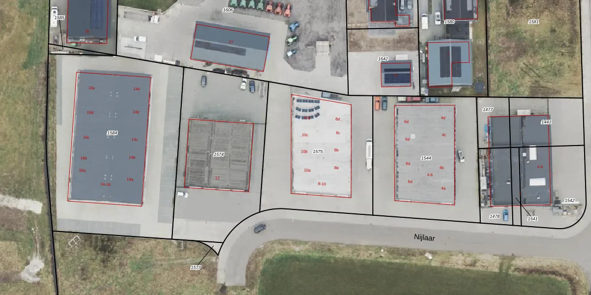 Het perceel waarop Nijlaar 10-c staat heeft een oppervlakte van 1516 m². Dit is een zeer groot perceel. De perceeloppervlakte wordt geregistreerd door het Kadaster. Gedetailleerde informatie over de maten van dit perceel kunt u vinden in het rapport Kadastrale kaart met maatvoering van Nijlaar 10-c.