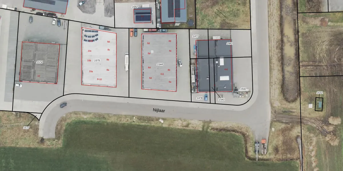 Het perceel waarop Nijlaar 4 staat heeft een oppervlakte van 1485 m². Dit is een zeer groot perceel. De perceeloppervlakte wordt geregistreerd door het Kadaster. Gedetailleerde informatie over de maten van dit perceel kunt u vinden in het rapport Kadastrale kaart met maatvoering van Nijlaar 4.