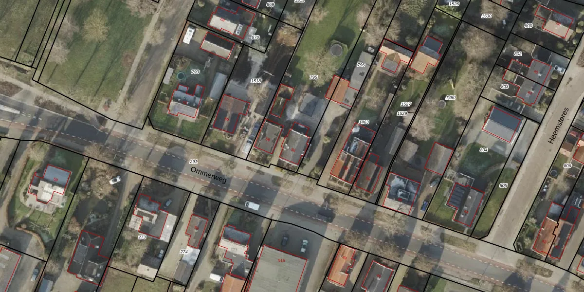 Ommerweg 56 is gelegen op kadastraal perceel HAM00F795. Deze kadastrale aanduiding is uniek en wordt gebruikt door het Kadaster om eigendomsrechten en andere zakelijke rechten vast te leggen. Het perceel maakt onderdeel uit van de kadastrale gemeente Den Ham.