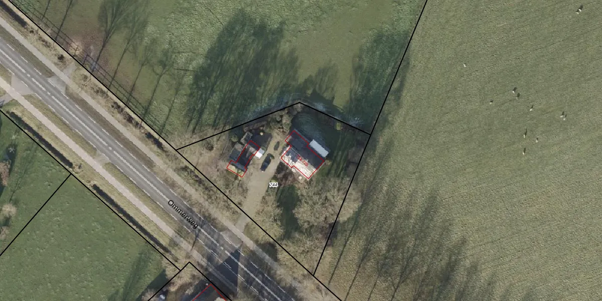 Het perceel waarop Ommerweg 72-b staat heeft een oppervlakte van 1875 m². Dit is een zeer groot perceel. De perceeloppervlakte wordt geregistreerd door het Kadaster. Gedetailleerde informatie over de maten van dit perceel kunt u vinden in het rapport Kadastrale kaart met maatvoering van Ommerweg 72-b.