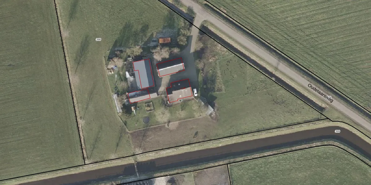 Oudelaarsweg 1 is gelegen op kadastraal perceel HAM00O398. Deze kadastrale aanduiding is uniek en wordt gebruikt door het Kadaster om eigendomsrechten en andere zakelijke rechten vast te leggen. Het perceel maakt onderdeel uit van de kadastrale gemeente Den Ham.