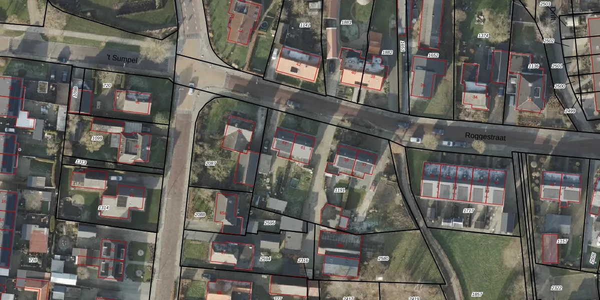 Het perceel waarop Roggestraat 61 staat heeft een oppervlakte van 1595 m². Dit is een zeer groot perceel. De perceeloppervlakte wordt geregistreerd door het Kadaster. Gedetailleerde informatie over de maten van dit perceel kunt u vinden in het rapport Kadastrale kaart met maatvoering van Roggestraat 61.