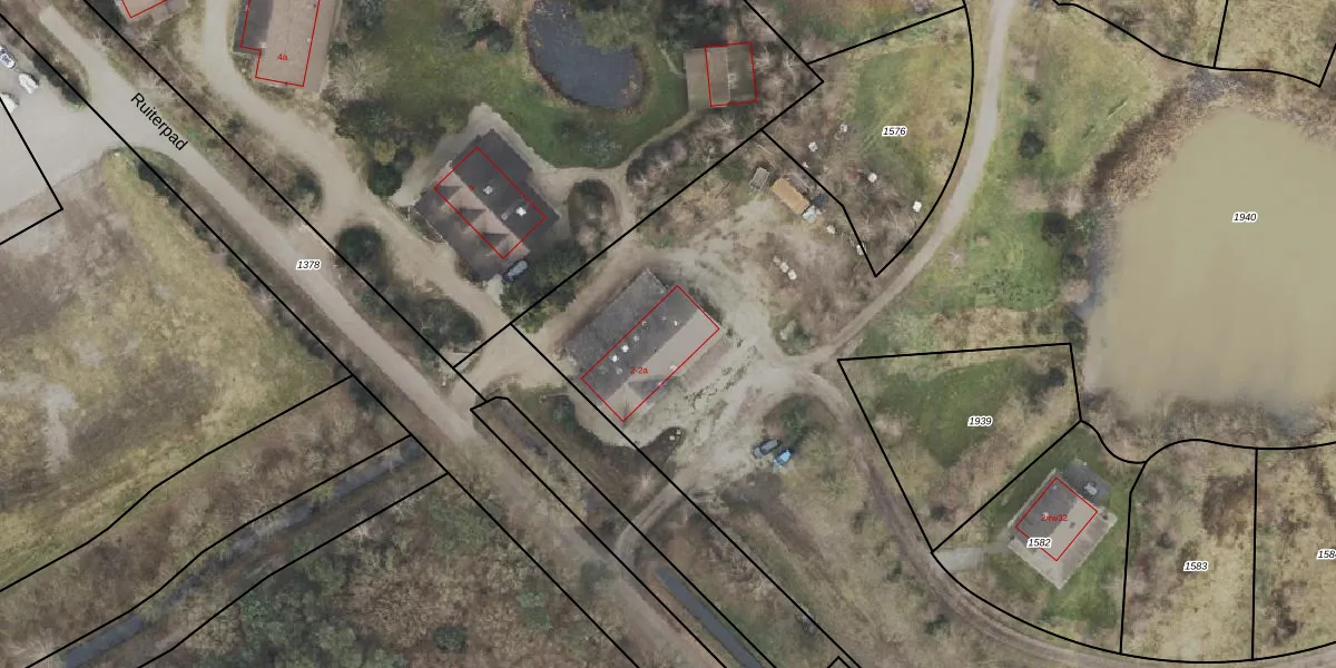 Het perceel waarop Ruiterpad 2-a staat heeft een oppervlakte van 9821 m². Dit is een zeer groot perceel. De perceeloppervlakte wordt geregistreerd door het Kadaster. Gedetailleerde informatie over de maten van dit perceel kunt u vinden in het rapport Kadastrale kaart met maatvoering van Ruiterpad 2-a.