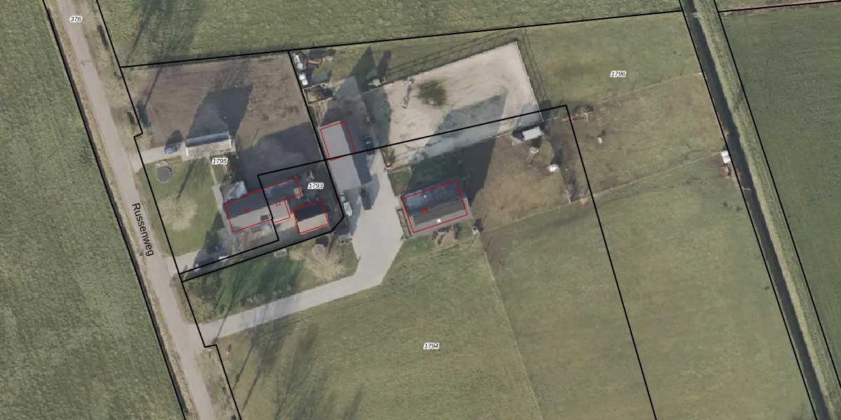 Russenweg 12-a is gelegen op kadastraal perceel HAM00N1794. Deze kadastrale aanduiding is uniek en wordt gebruikt door het Kadaster om eigendomsrechten en andere zakelijke rechten vast te leggen. Het perceel maakt onderdeel uit van de kadastrale gemeente Den Ham.
