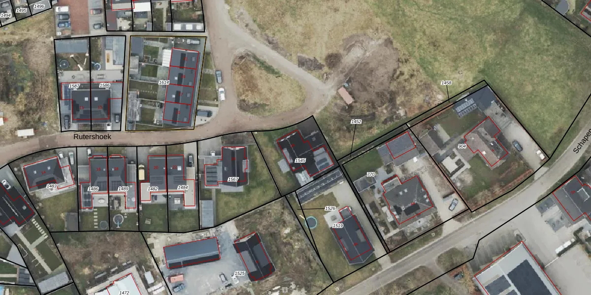 Het perceel waarop Rutershoek 26 staat heeft een oppervlakte van 453 m². Dit is een groot perceel. De perceeloppervlakte wordt geregistreerd door het Kadaster. Gedetailleerde informatie over de maten van dit perceel kunt u vinden in het rapport Kadastrale kaart met maatvoering van Rutershoek 26.