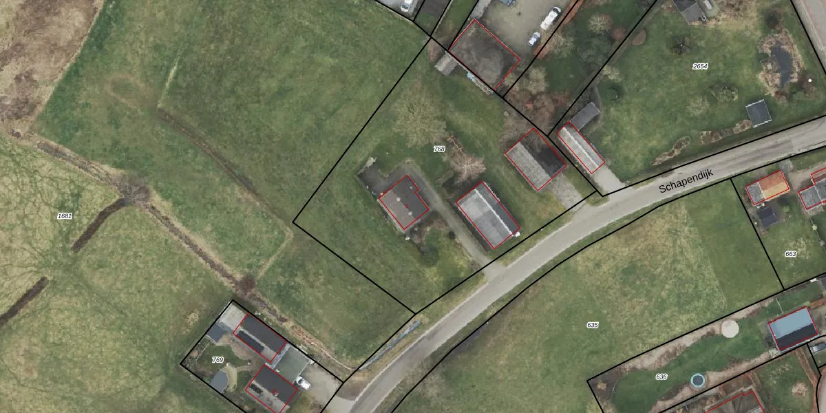 Het perceel waarop Schapendijk 2 staat heeft een oppervlakte van 2470 m². Dit is een zeer groot perceel. De perceeloppervlakte wordt geregistreerd door het Kadaster. Gedetailleerde informatie over de maten van dit perceel kunt u vinden in het rapport Kadastrale kaart met maatvoering van Schapendijk 2.