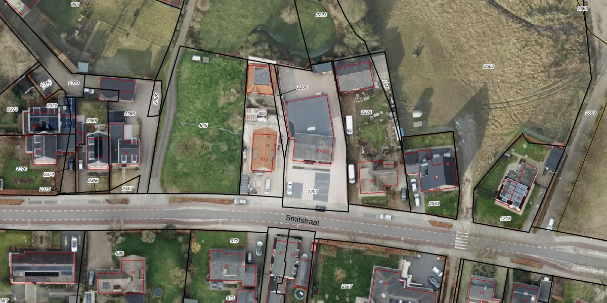 Het perceel waarop Smitstraat 18-a staat heeft een oppervlakte van 942 m². Dit is een groot perceel. De perceeloppervlakte wordt geregistreerd door het Kadaster. Gedetailleerde informatie over de maten van dit perceel kunt u vinden in het rapport Kadastrale kaart met maatvoering van Smitstraat 18-a.