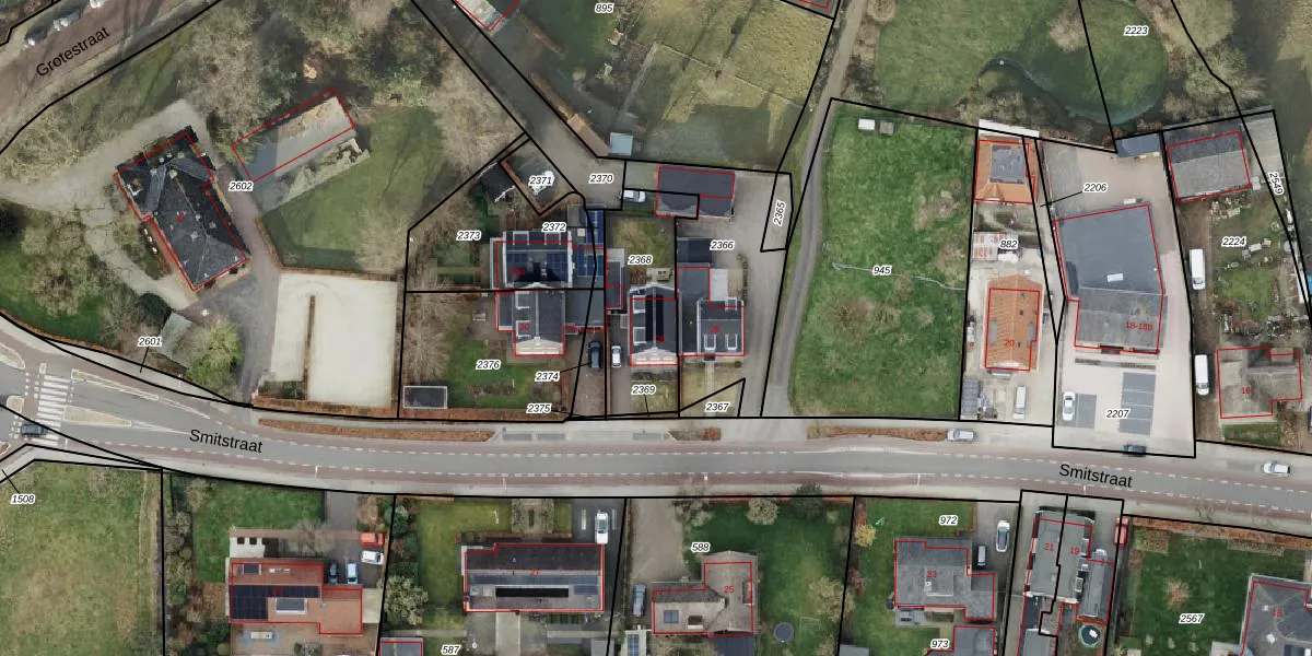 Gebruik de zoekbalk of klik op een perceel voor informatie over de adressen binnen dit perceel.