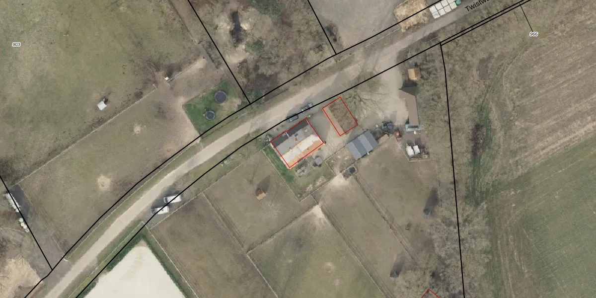 Het perceel waarop Twistweg 4 staat heeft een oppervlakte van 2,1 ha. Dit is een zeer groot perceel. De perceeloppervlakte wordt geregistreerd door het Kadaster. Gedetailleerde informatie over de maten van dit perceel kunt u vinden in het rapport Kadastrale kaart met maatvoering van Twistweg 4.