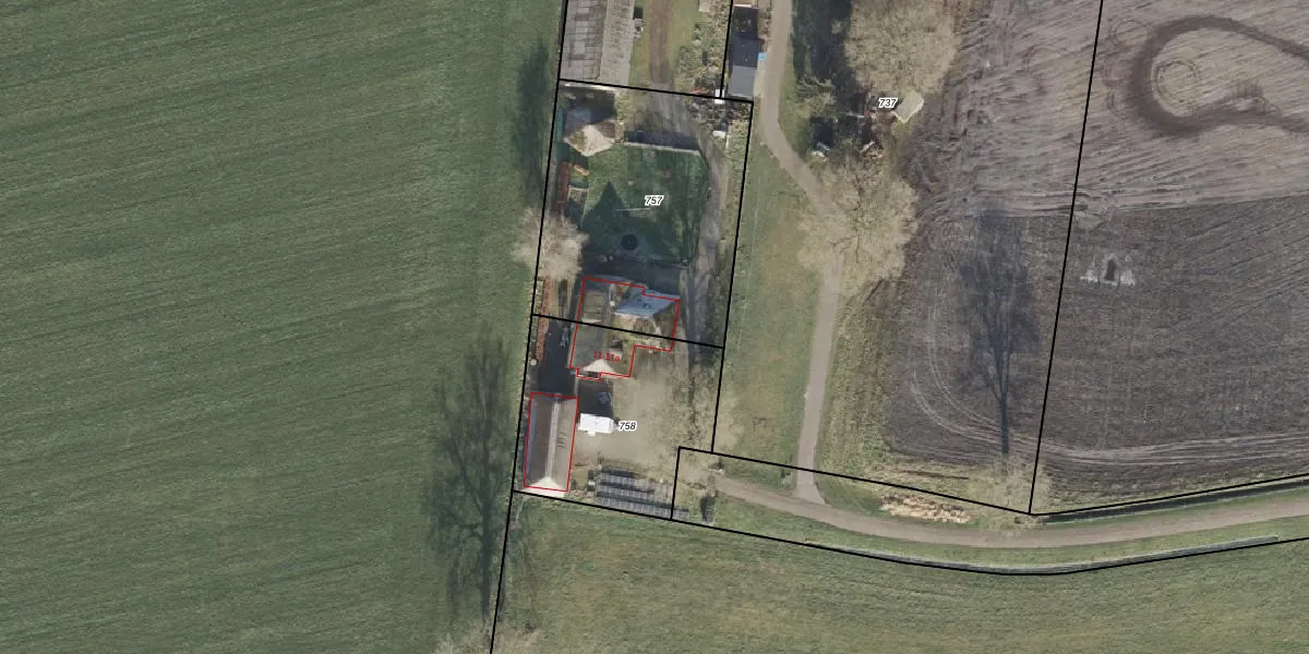 Het adres is gelegen op perceel 757 in de sectie O en de kadastrale gemeente Den Ham. De kadastrale aanduiding is aldus HAM00-O-757. De gemiddelde perceelgrootte in Den Ham is 4688,65 m². Dit perceel is kleiner: de perceeloppervlakte bedraagt 1104 m². Het grootste perceel in de kadastrale gemeente is 57,2 ha. Het kleinste perceel heeft een oppervlakte van 0 m². Dit is het enige adres dat aanwezig is op het perceel. De huidige grenzen van het perceel zijn digitaal in de Basisregistratie Kadaster (BRK) geregistreerd op 17-02-2006.