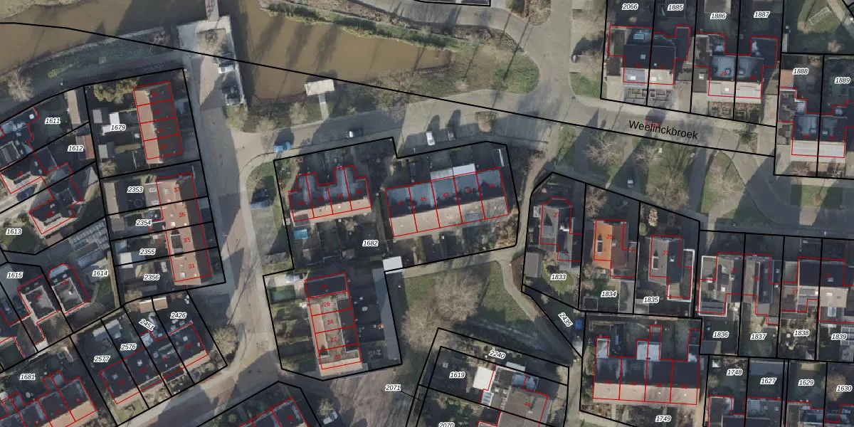 Weelinckbroek 45 is gelegen op kadastraal perceel HAM00D1682. Deze kadastrale aanduiding is uniek en wordt gebruikt door het Kadaster om eigendomsrechten en andere zakelijke rechten vast te leggen. Het perceel maakt onderdeel uit van de kadastrale gemeente Den Ham.