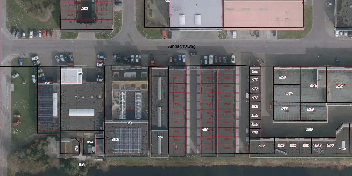 Het perceel waarop Ambachtsweg 8-A-3 staat heeft een oppervlakte van 2300 m². Dit is een zeer groot perceel. De perceeloppervlakte wordt geregistreerd door het Kadaster. Gedetailleerde informatie over de maten van dit perceel kunt u vinden in het rapport Kadastrale kaart met maatvoering van Ambachtsweg 8-A-3.