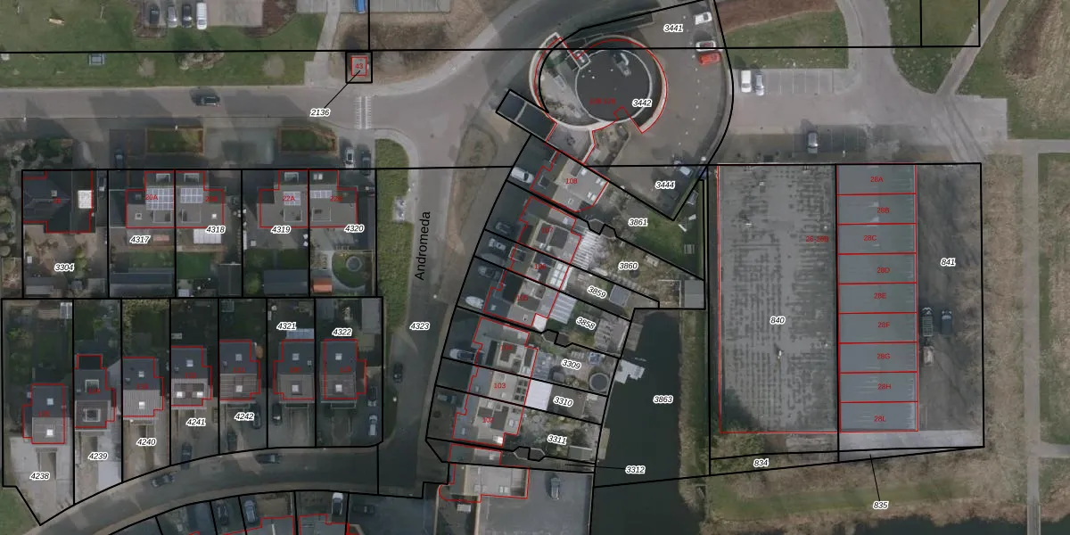 Het perceel waarop Andromeda 106 staat heeft een oppervlakte van 178 m². Dit is een middelgroot perceel. De perceeloppervlakte wordt geregistreerd door het Kadaster. Gedetailleerde informatie over de maten van dit perceel kunt u vinden in het rapport Kadastrale kaart met maatvoering van Andromeda 106.