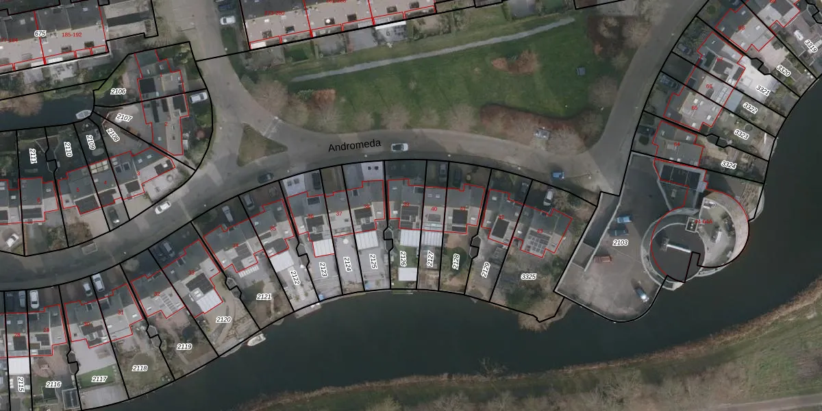 Het perceel waarop Andromeda 39 staat heeft een oppervlakte van 262 m². Dit is een middelgroot perceel. De perceeloppervlakte wordt geregistreerd door het Kadaster. Gedetailleerde informatie over de maten van dit perceel kunt u vinden in het rapport Kadastrale kaart met maatvoering van Andromeda 39.