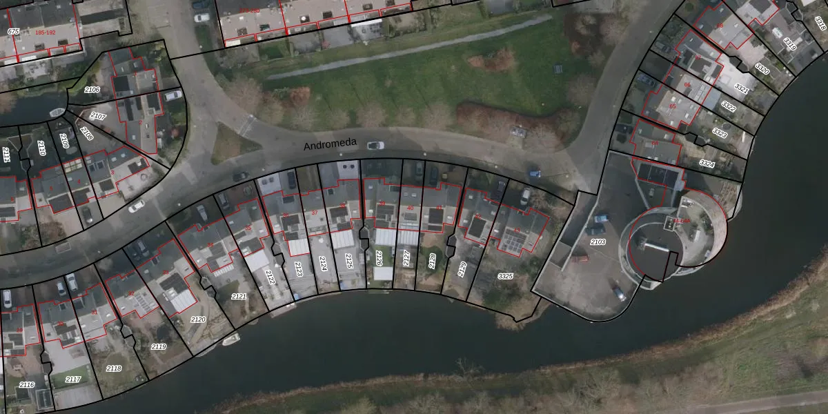 Het perceel waarop Andromeda 40 staat heeft een oppervlakte van 170 m². Dit is een middelgroot perceel. De perceeloppervlakte wordt geregistreerd door het Kadaster. Gedetailleerde informatie over de maten van dit perceel kunt u vinden in het rapport Kadastrale kaart met maatvoering van Andromeda 40.
