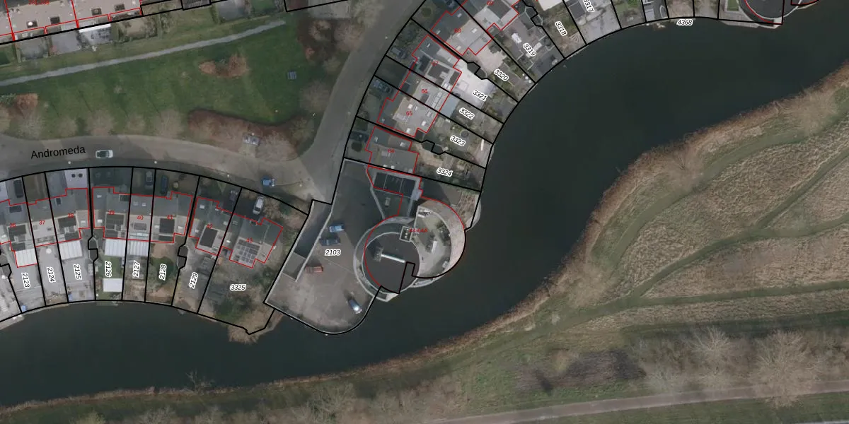 Het perceel waarop Andromeda 45 staat heeft een oppervlakte van 1205 m². Dit is een zeer groot perceel. De perceeloppervlakte wordt geregistreerd door het Kadaster. Gedetailleerde informatie over de maten van dit perceel kunt u vinden in het rapport Kadastrale kaart met maatvoering van Andromeda 45.
