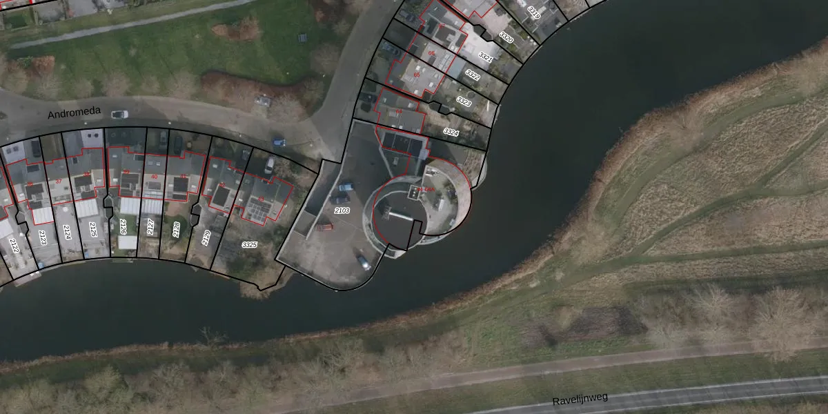 Het perceel waarop Andromeda 52 staat heeft een oppervlakte van 1205 m². Dit is een zeer groot perceel. De perceeloppervlakte wordt geregistreerd door het Kadaster. Gedetailleerde informatie over de maten van dit perceel kunt u vinden in het rapport Kadastrale kaart met maatvoering van Andromeda 52.