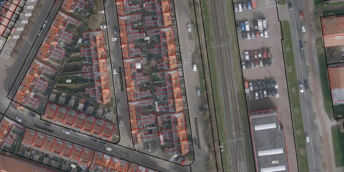 Het perceel waarop Anemonenstraat 14 staat heeft een oppervlakte van 4175 m². Dit is een zeer groot perceel. De perceeloppervlakte wordt geregistreerd door het Kadaster. Gedetailleerde informatie over de maten van dit perceel kunt u vinden in het rapport Kadastrale kaart met maatvoering van Anemonenstraat 14.