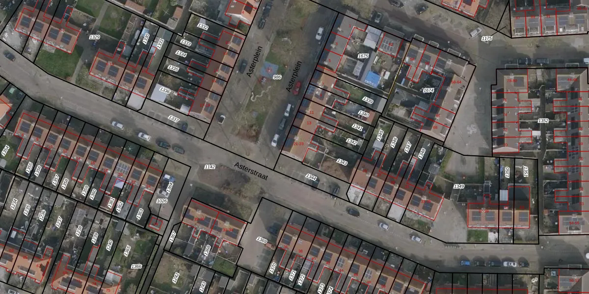 Het perceel waarop Asterstraat 23 staat heeft een oppervlakte van 275 m². Dit is een middelgroot perceel. De perceeloppervlakte wordt geregistreerd door het Kadaster. Gedetailleerde informatie over de maten van dit perceel kunt u vinden in het rapport Kadastrale kaart met maatvoering van Asterstraat 23.