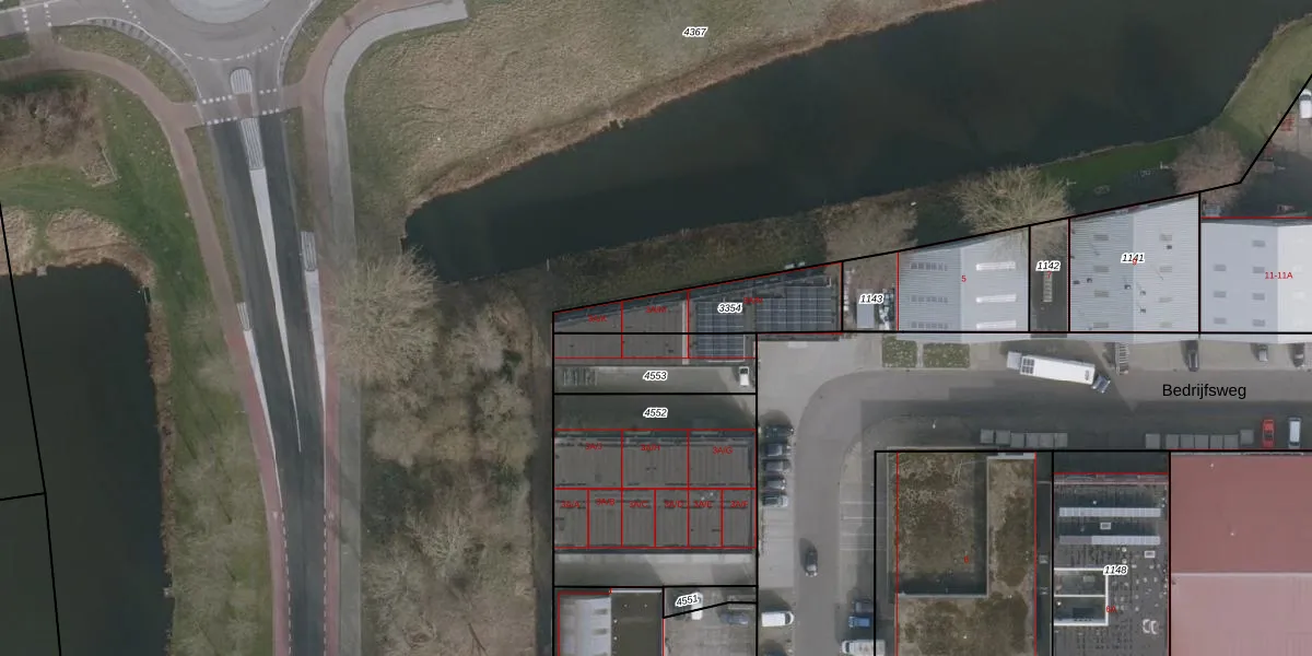 Het perceel waarop Bedrijfsweg 3-A-M staat heeft een oppervlakte van 310 m². Dit is een groot perceel. De perceeloppervlakte wordt geregistreerd door het Kadaster. Gedetailleerde informatie over de maten van dit perceel kunt u vinden in het rapport Kadastrale kaart met maatvoering van Bedrijfsweg 3-A-M.