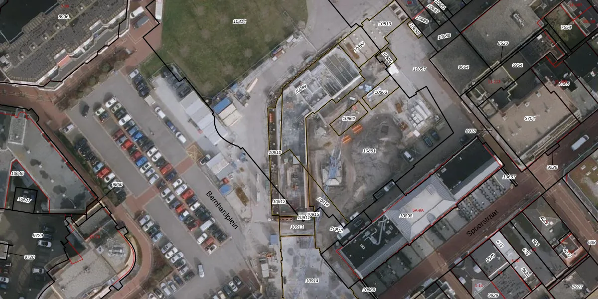 Het perceel waarop Bernhardplein 12-E staat heeft een oppervlakte van 497 m². Dit is een groot perceel. De perceeloppervlakte wordt geregistreerd door het Kadaster. Gedetailleerde informatie over de maten van dit perceel kunt u vinden in het rapport Kadastrale kaart met maatvoering van Bernhardplein 12-E.