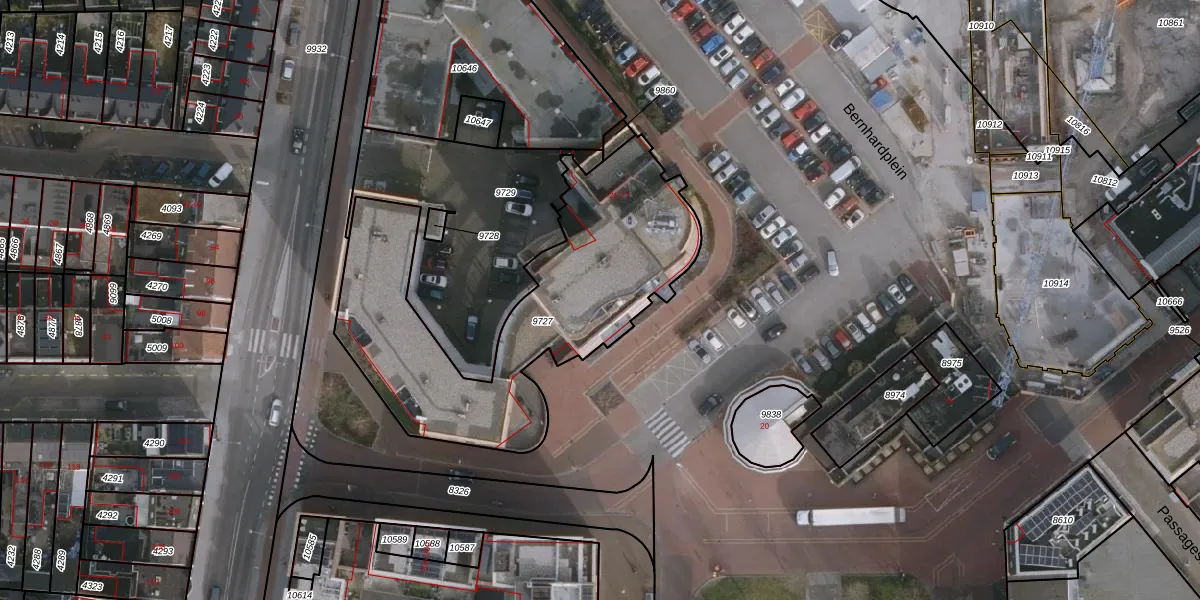 Het perceel waarop Bernhardplein 23-B staat heeft een oppervlakte van 1400 m². Dit is een zeer groot perceel. De perceeloppervlakte wordt geregistreerd door het Kadaster. Gedetailleerde informatie over de maten van dit perceel kunt u vinden in het rapport Kadastrale kaart met maatvoering van Bernhardplein 23-B.