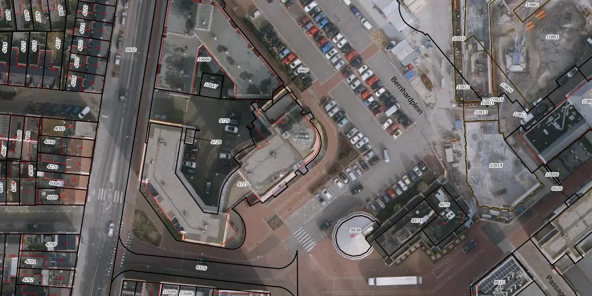 Het perceel waarop Bernhardplein 30-A staat heeft een oppervlakte van 1400 m². Dit is een zeer groot perceel. De perceeloppervlakte wordt geregistreerd door het Kadaster. Gedetailleerde informatie over de maten van dit perceel kunt u vinden in het rapport Kadastrale kaart met maatvoering van Bernhardplein 30-A.