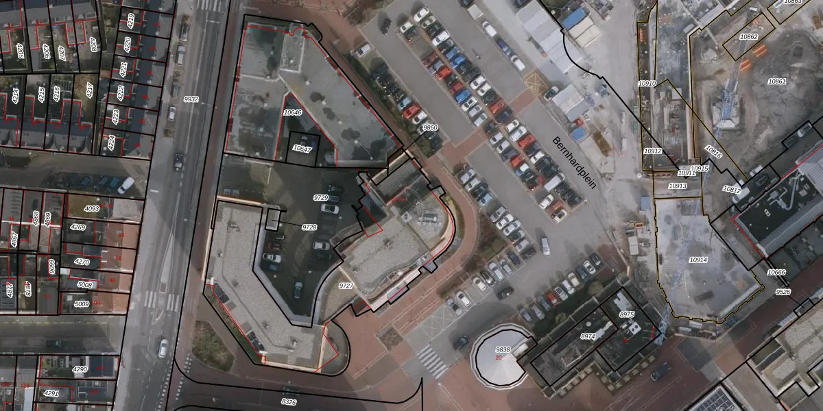 Het perceel waarop Bernhardplein 31-D staat heeft een oppervlakte van 1400 m². Dit is een zeer groot perceel. De perceeloppervlakte wordt geregistreerd door het Kadaster. Gedetailleerde informatie over de maten van dit perceel kunt u vinden in het rapport Kadastrale kaart met maatvoering van Bernhardplein 31-D.