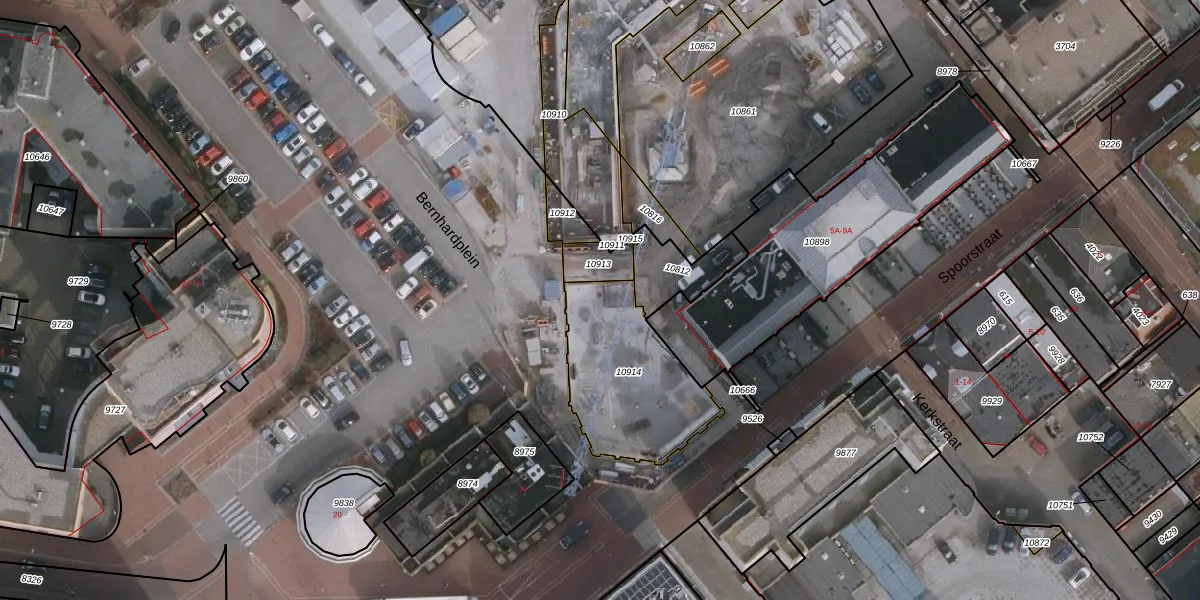 Het perceel waarop Bernhardplein 6-A staat heeft een oppervlakte van 518 m². Dit is een groot perceel. De perceeloppervlakte wordt geregistreerd door het Kadaster. Gedetailleerde informatie over de maten van dit perceel kunt u vinden in het rapport Kadastrale kaart met maatvoering van Bernhardplein 6-A.