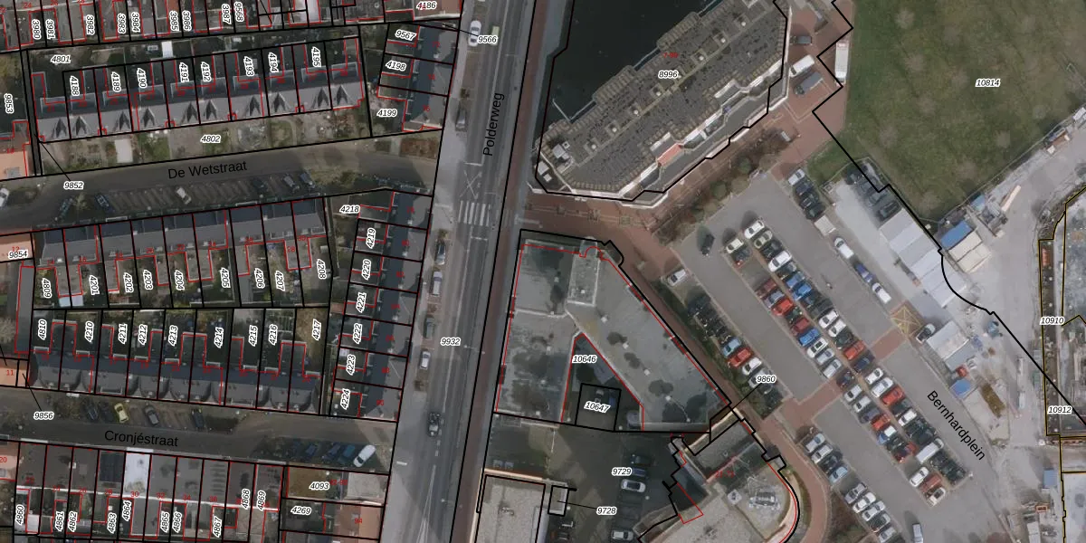Het perceel waarop Bernhardplein 62 staat heeft een oppervlakte van 999 m². Dit is een groot perceel. De perceeloppervlakte wordt geregistreerd door het Kadaster. Gedetailleerde informatie over de maten van dit perceel kunt u vinden in het rapport Kadastrale kaart met maatvoering van Bernhardplein 62.
