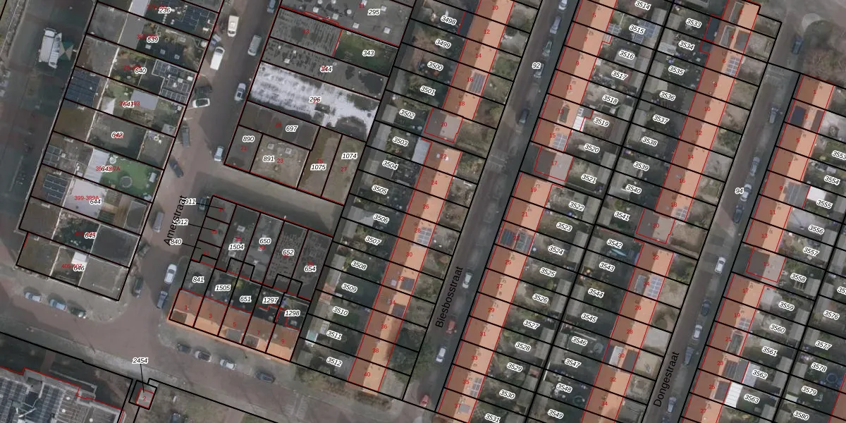Gebruik de zoekbalk of klik op een perceel voor informatie over de adressen binnen dit perceel.