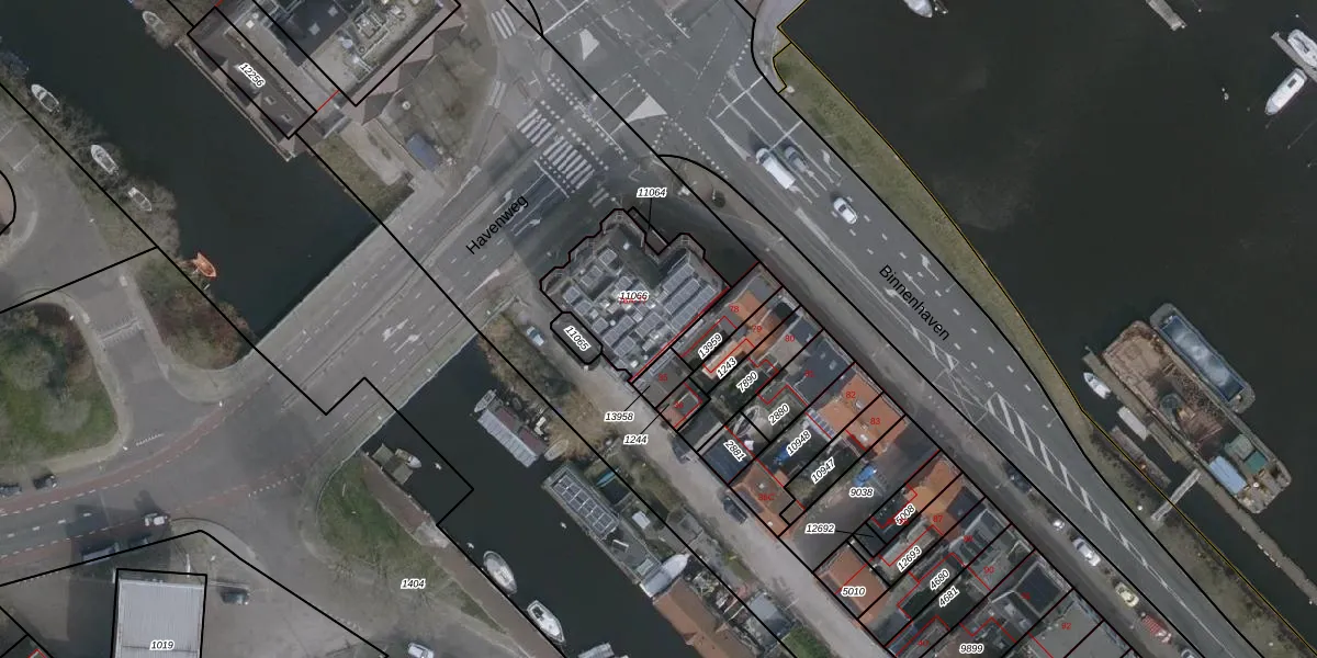 Het perceel waarop Binnenhaven 76-K staat heeft een oppervlakte van 396 m². Dit is een groot perceel. De perceeloppervlakte wordt geregistreerd door het Kadaster. Gedetailleerde informatie over de maten van dit perceel kunt u vinden in het rapport Kadastrale kaart met maatvoering van Binnenhaven 76-K.