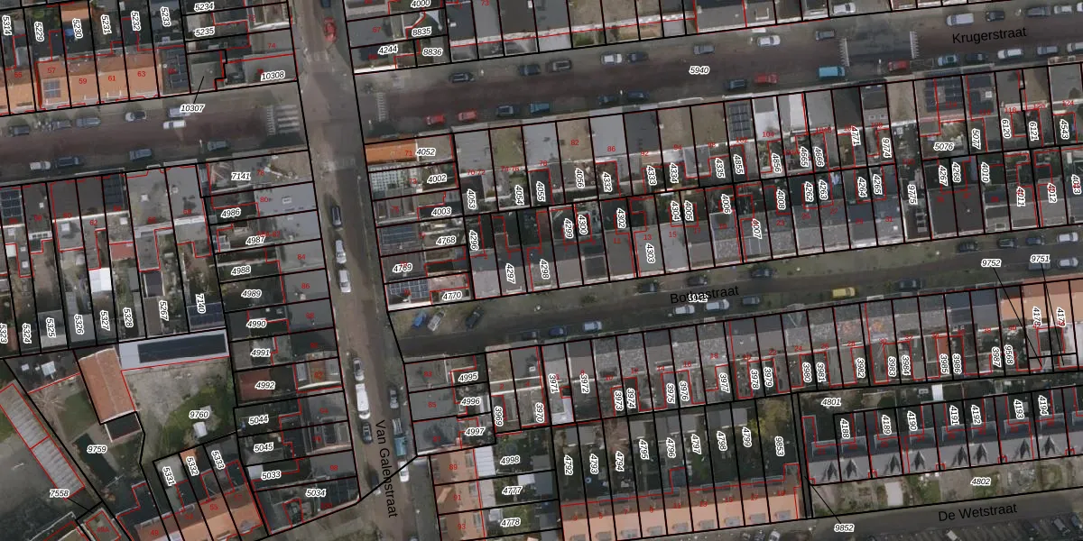 Het perceel waarop Bothastraat 5 staat heeft een oppervlakte van 89 m². Dit is een klein perceel. De perceeloppervlakte wordt geregistreerd door het Kadaster. Gedetailleerde informatie over de maten van dit perceel kunt u vinden in het rapport Kadastrale kaart met maatvoering van Bothastraat 5.