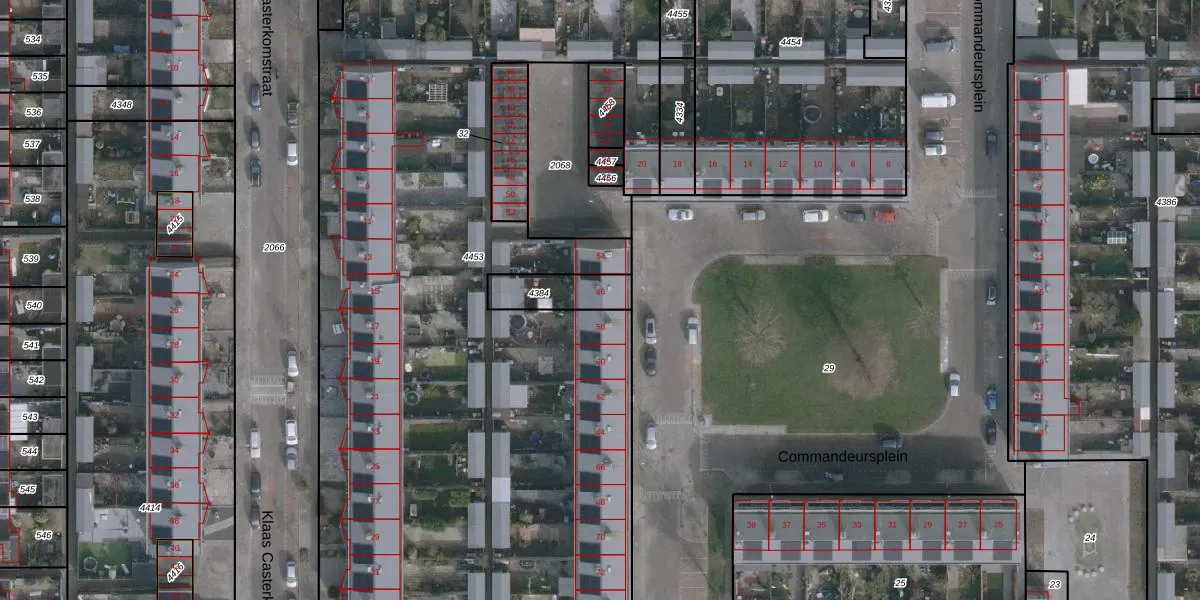 Het perceel waarop Commandeursplein 56 staat heeft een oppervlakte van 140 m². Dit is een middelgroot perceel. De perceeloppervlakte wordt geregistreerd door het Kadaster. Gedetailleerde informatie over de maten van dit perceel kunt u vinden in het rapport Kadastrale kaart met maatvoering van Commandeursplein 56.