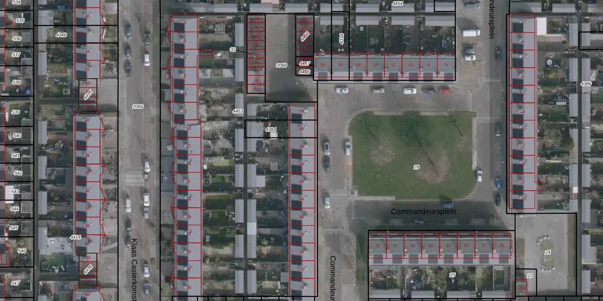 Het perceel waarop Commandeursplein 58 staat heeft een oppervlakte van 5934 m². Dit is een zeer groot perceel. De perceeloppervlakte wordt geregistreerd door het Kadaster. Gedetailleerde informatie over de maten van dit perceel kunt u vinden in het rapport Kadastrale kaart met maatvoering van Commandeursplein 58.
